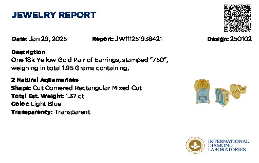 8K Yellow Gold earring with natural Aquamarine.