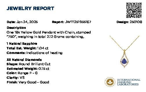| Stone Weight: | Blue Sapphire 1.04 CT |