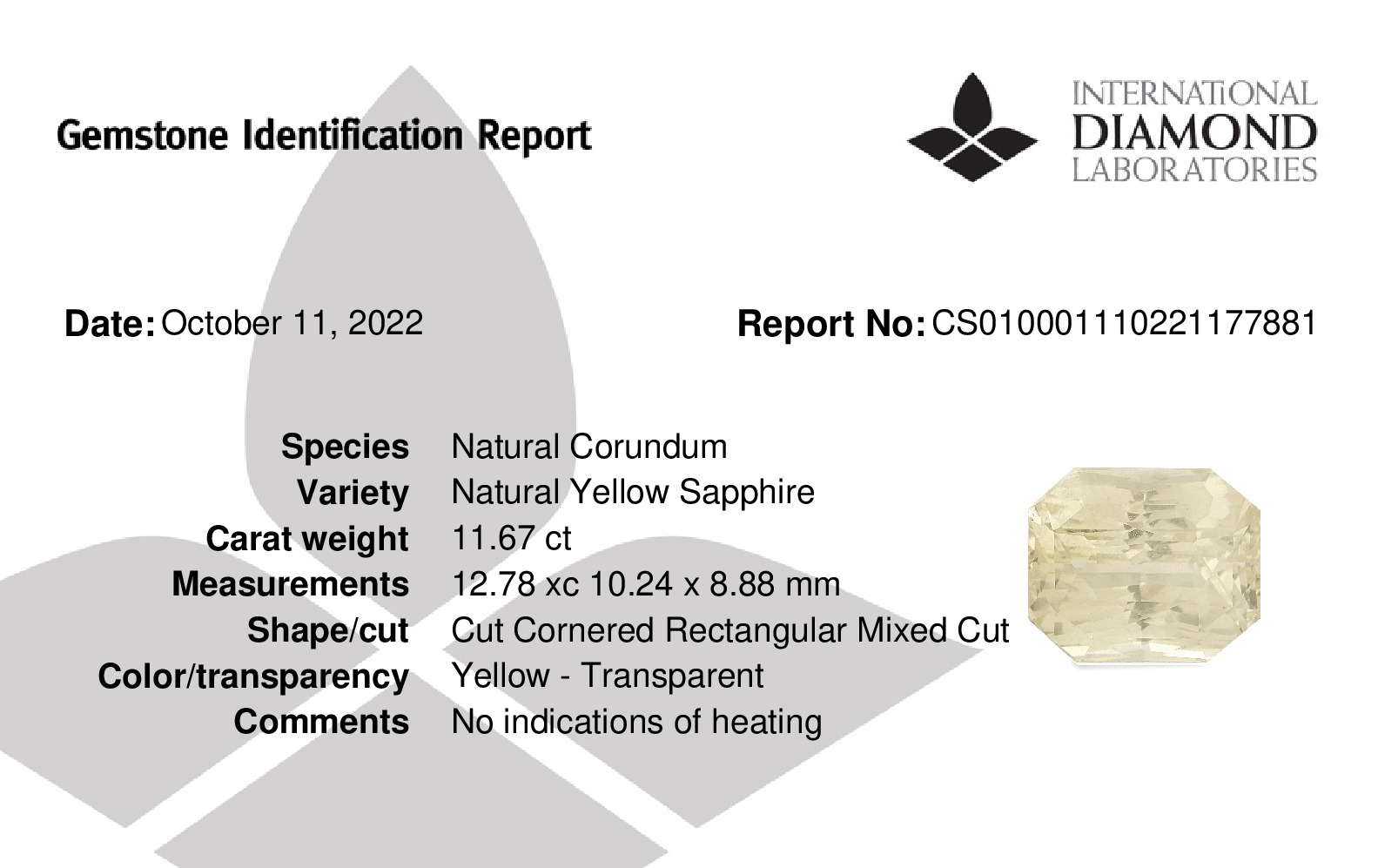 Remarks:Certified Natural Ceylon Yellow Sapphire