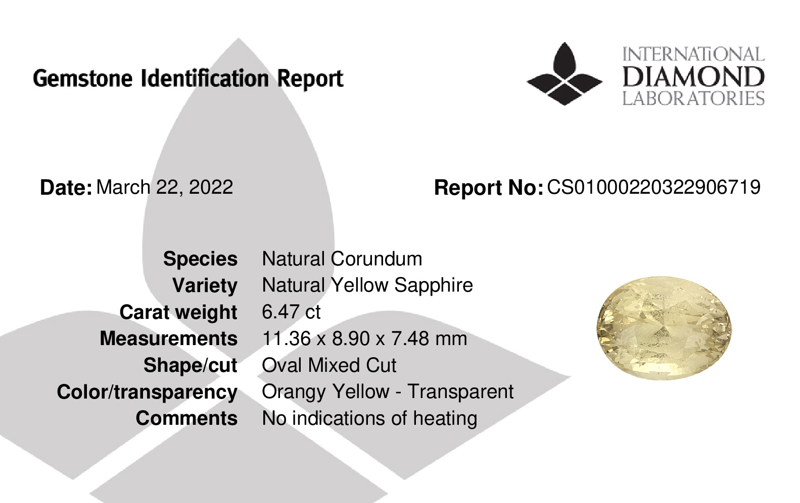 | Remarks: | Certified Natural Ceylon Yellow Sapphire |